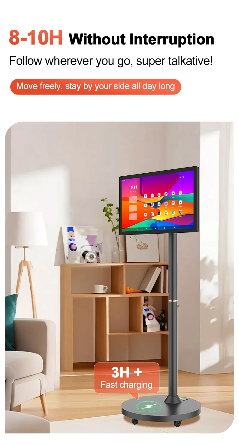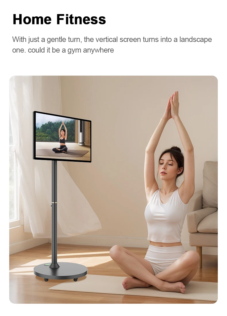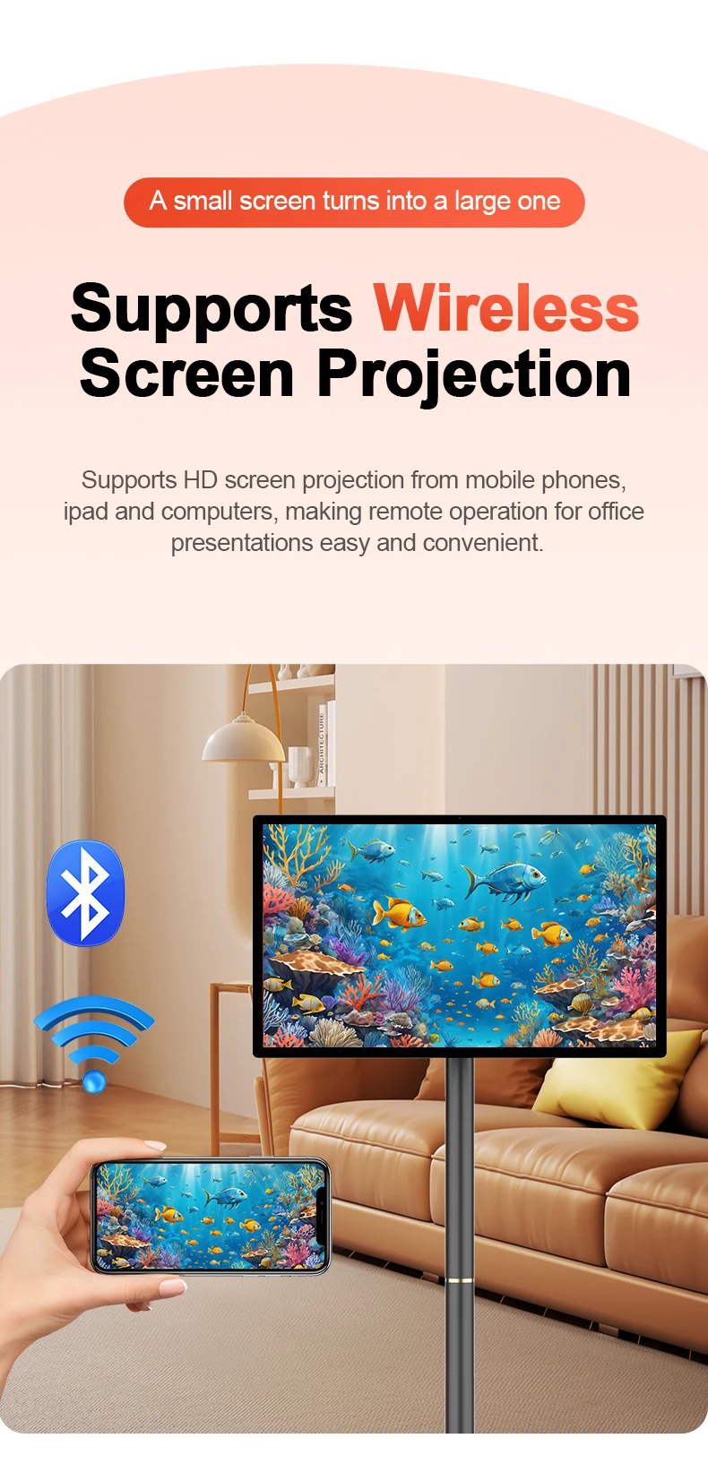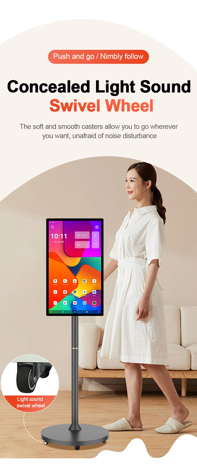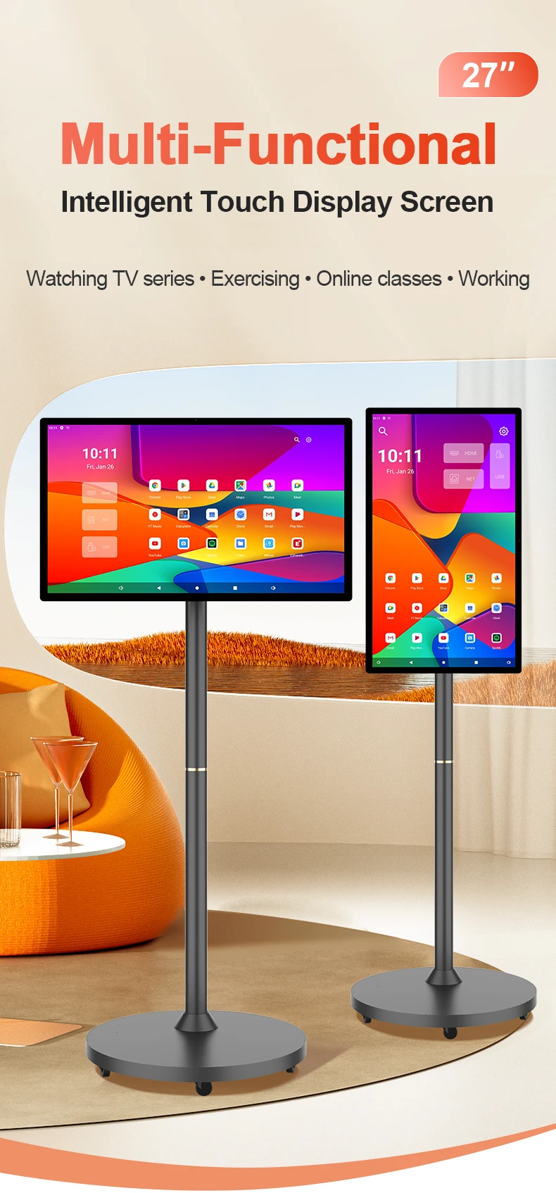 27 Inch Movable With Stand Smart Home Business TV Wireless Smart TV With Rotating Wheels Touch Screen Portable TV