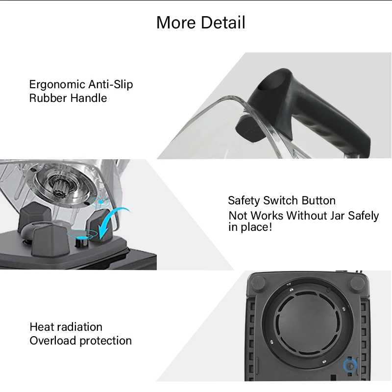 1. As soon as you received the blender, please add some water inside the container to test, DO NOT run it without anything inside as it’s a bad try for the coupling system, DO NOT grinding dry ingredients over 1 minute.