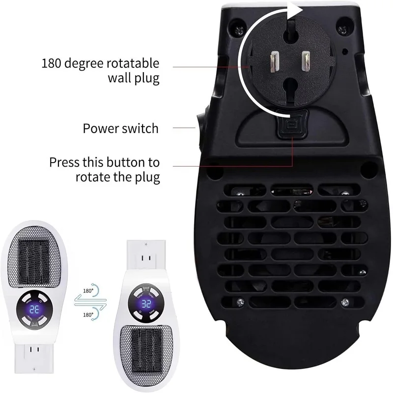 Eco Plug in Electric Heater Wall Outlet Space Heater with Energy Efficient Low Noise Room Heater Portable Heaters for Indoor Use