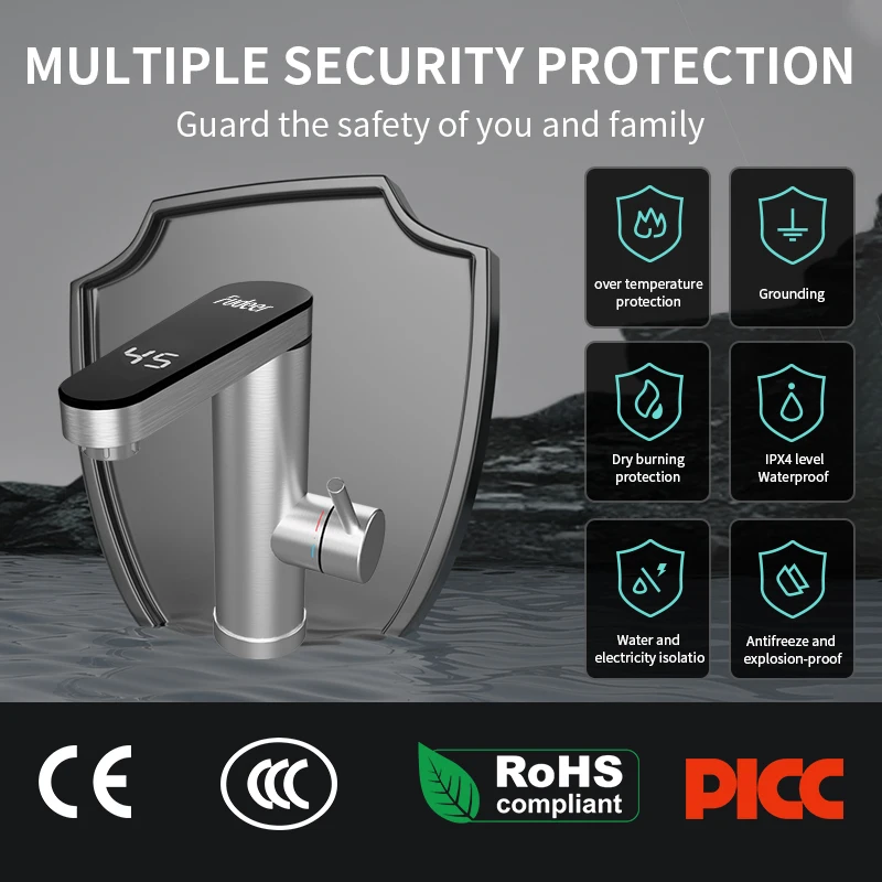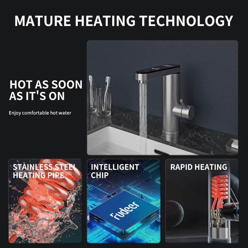 Fudeer 3400W 220V Electric Kitchen Water Heater Tap Instant Hot Stainless Steel Water Faucet Heater Cold Heating Faucet