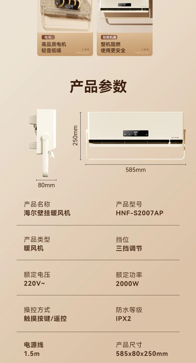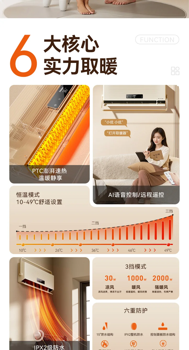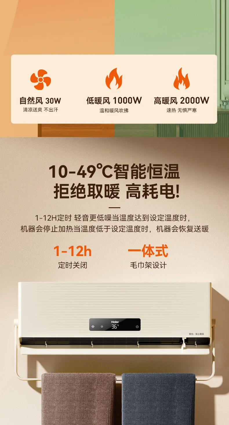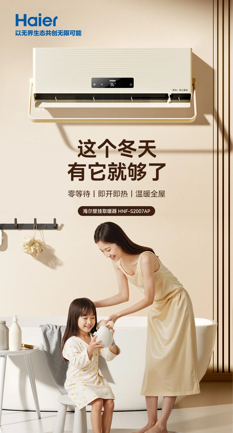 Haier 220V Heater Bathroom Household Energy-saving Wall-mounted Electric Heater Bath Bathroom Heater