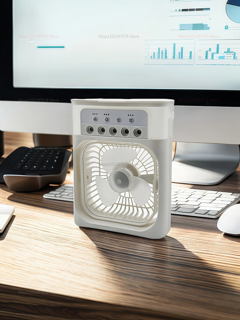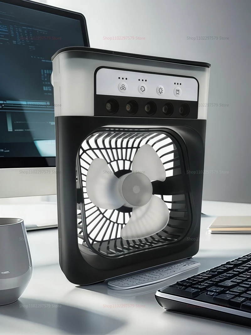 Portable Fan – 3 in 1 Desktop Humidifier Cooler USB Mini Air Conditioner LED Night Light Spray Cooling Fans for Home Office