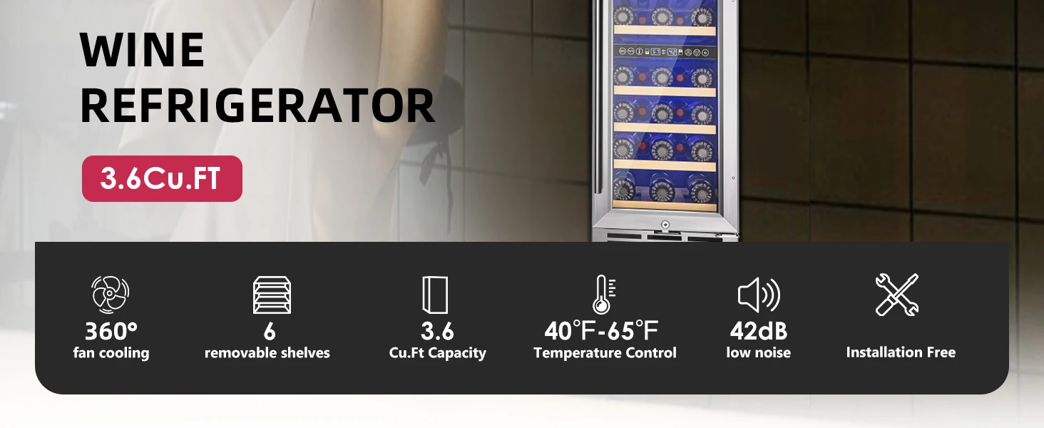 SIMZLIFE 15-inch Wine Refrigerator, Dual/Single Zone, Wine Cooler with Digital Temperature Control, Two-Way Glass Door